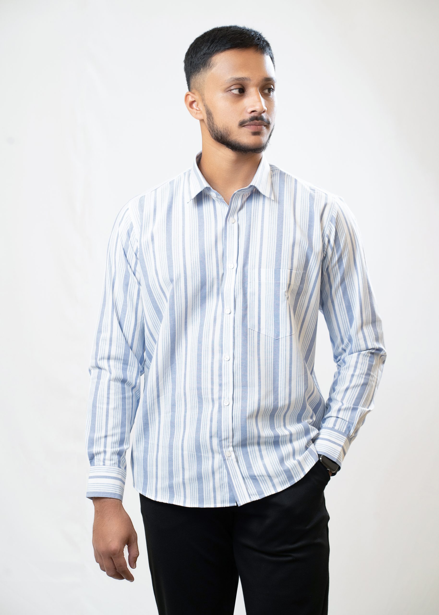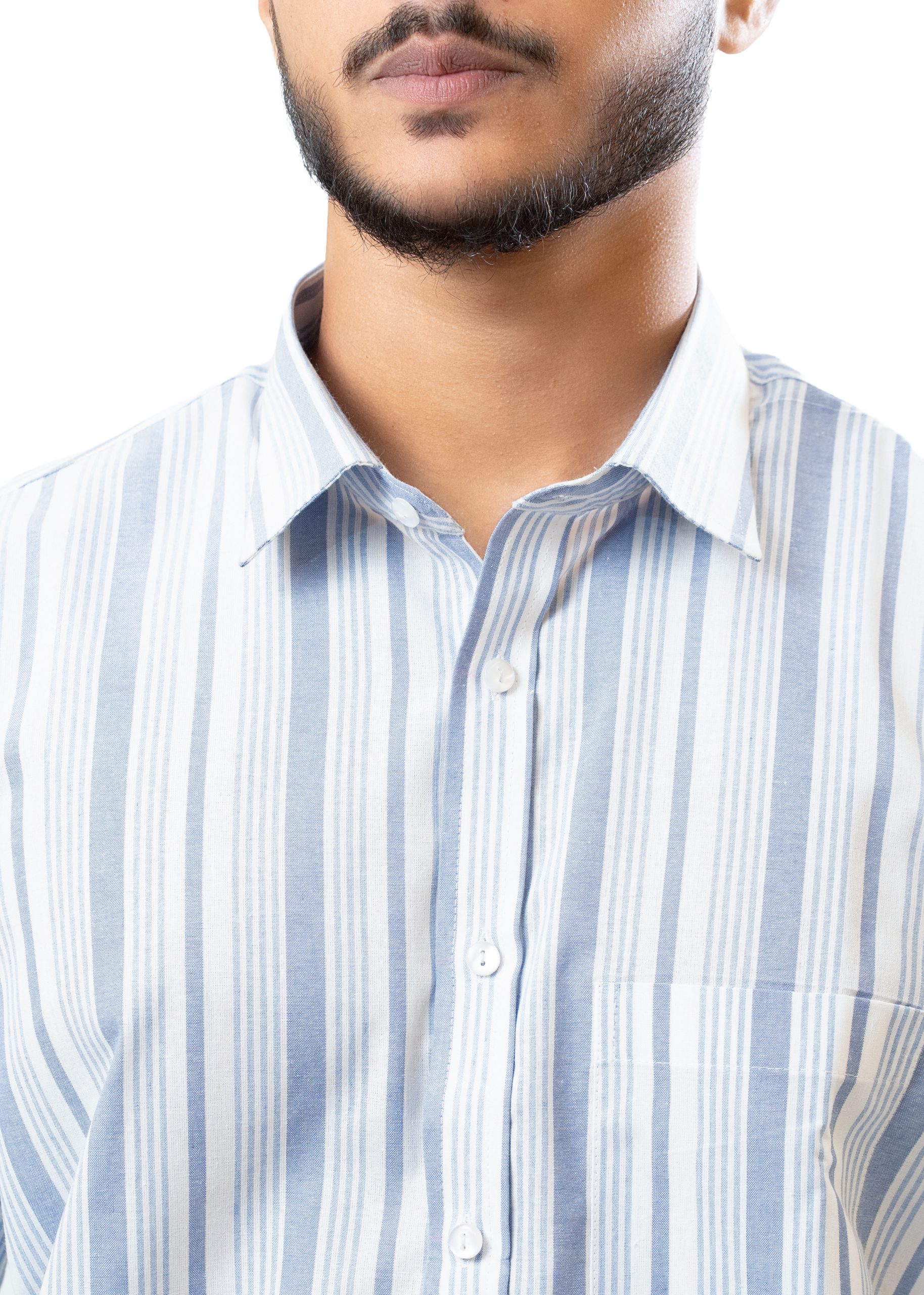 Men’s premium shirts made of 100% cotton export quality fabric. it comes with white and blue combined stripe.