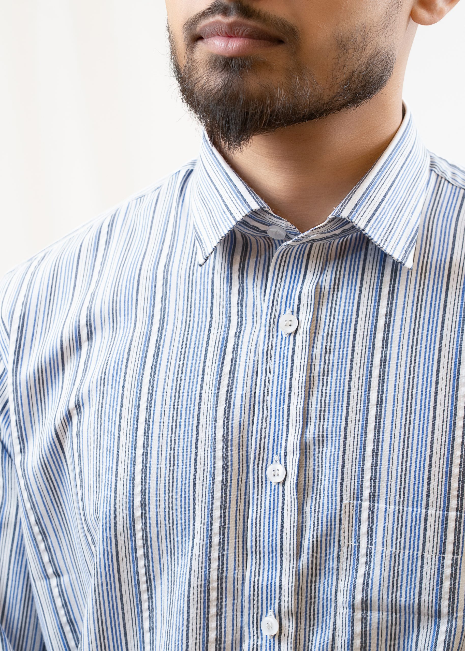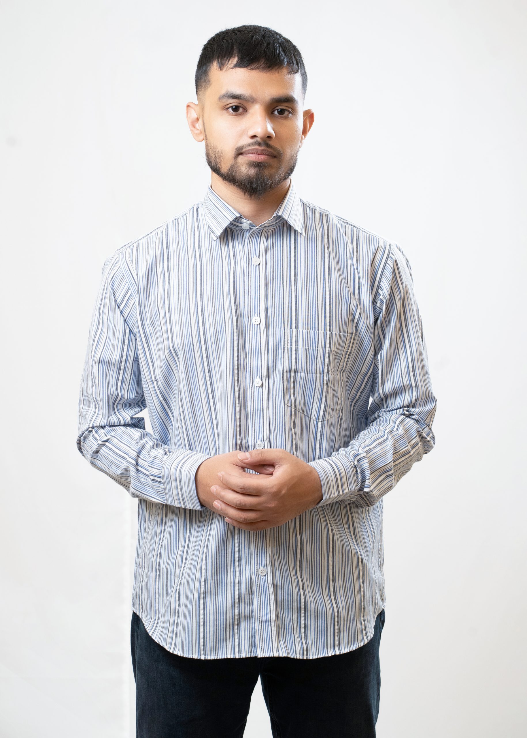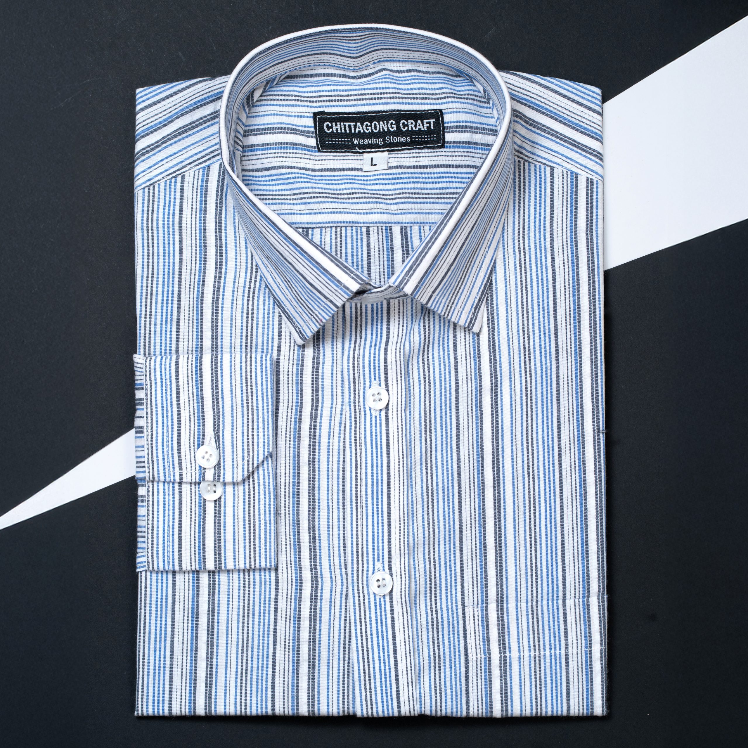 Men's premium shirts made of 100% cotton export quality fabric. it comes with white, gray and blue combined stripe.